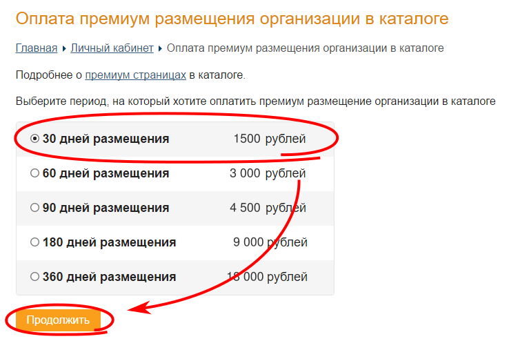 Выберите срок оплаты/продления и нажмите кнопку "Продолжить".